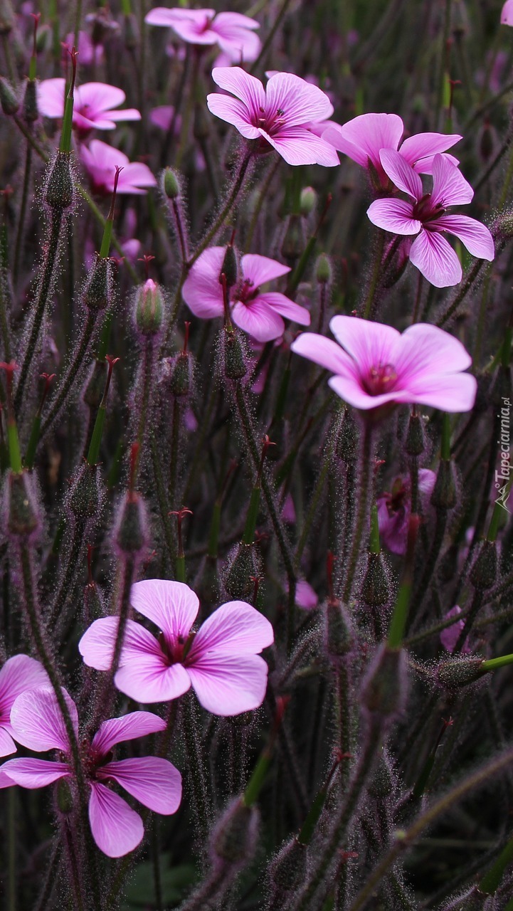 Edytor tapety: Różowe kwiatki o długich łodygach