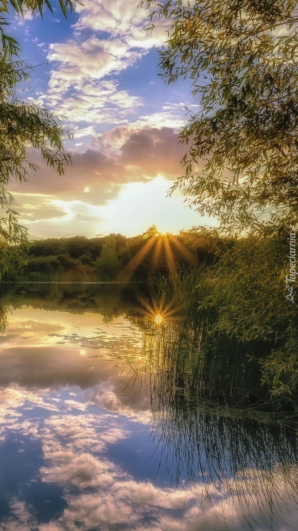 Edytor tapety: Słońce odbija się w jeziorze