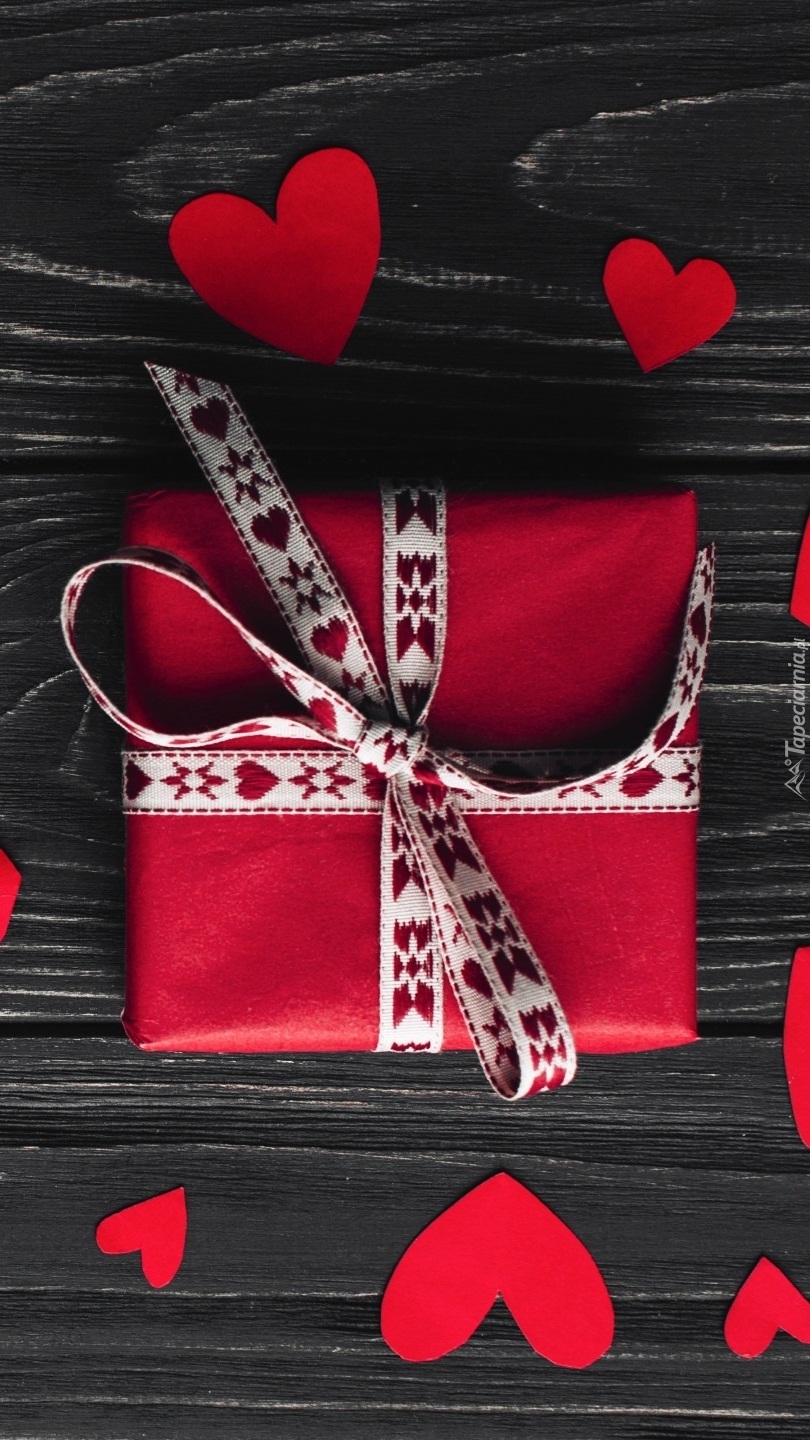 Edytor tapety: Walentynkowy prezent i czerwone serduszka