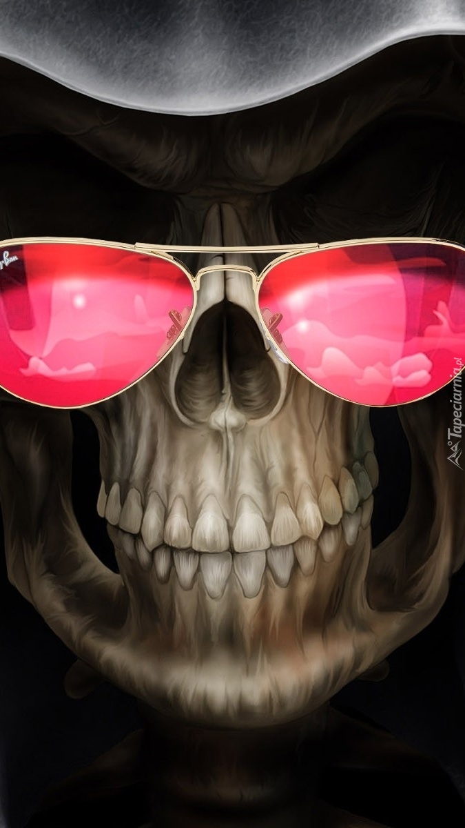 Edytor tapety: Czaszka w różowych okularach
