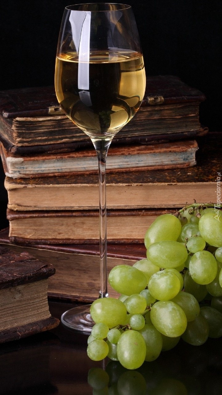 Edytor tapety: Stos książek za kieliszkiem wina