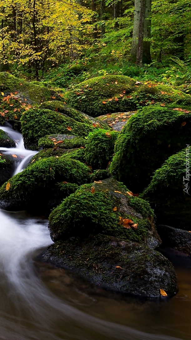 Edytor tapety: Strumyk wijący się między omszałymi kamieniami