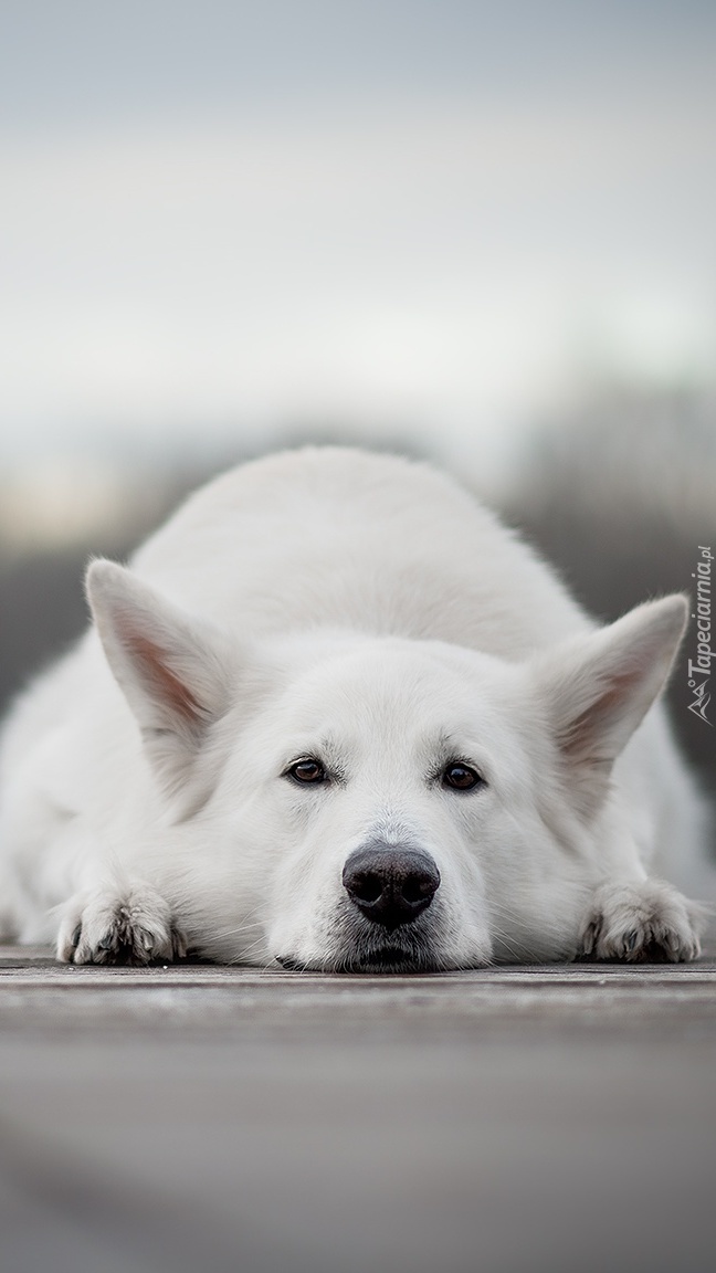 Edytor tapety: Leżący biały owczarek szwajcarski