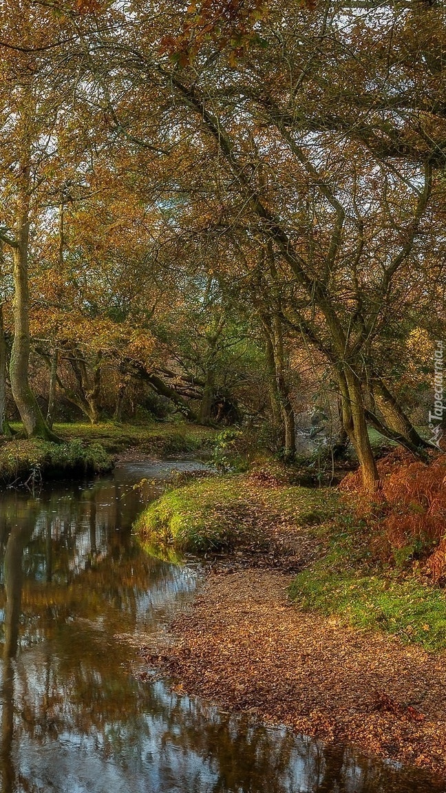 Edytor tapety: Rzeka płynąca przez jesienny las