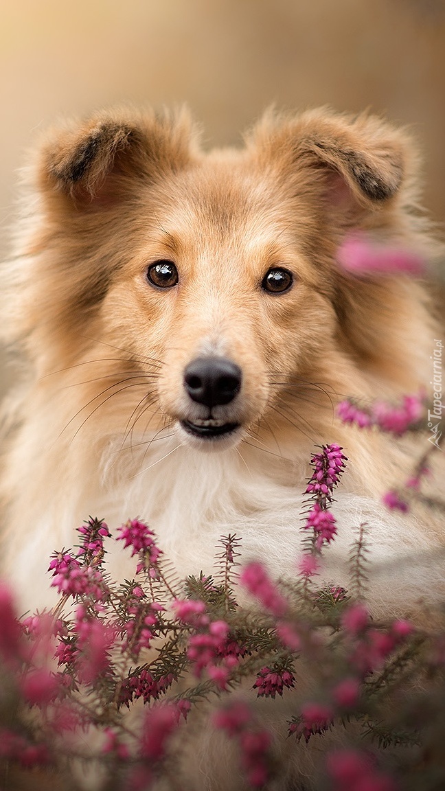 Edytor tapety: Owczarek szetlandzki i wrzosy