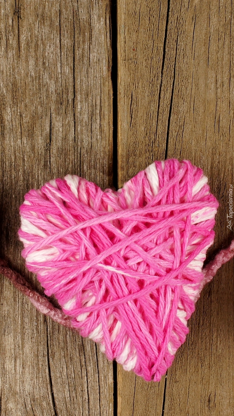Edytor tapety: Serce z włóczki na deskach