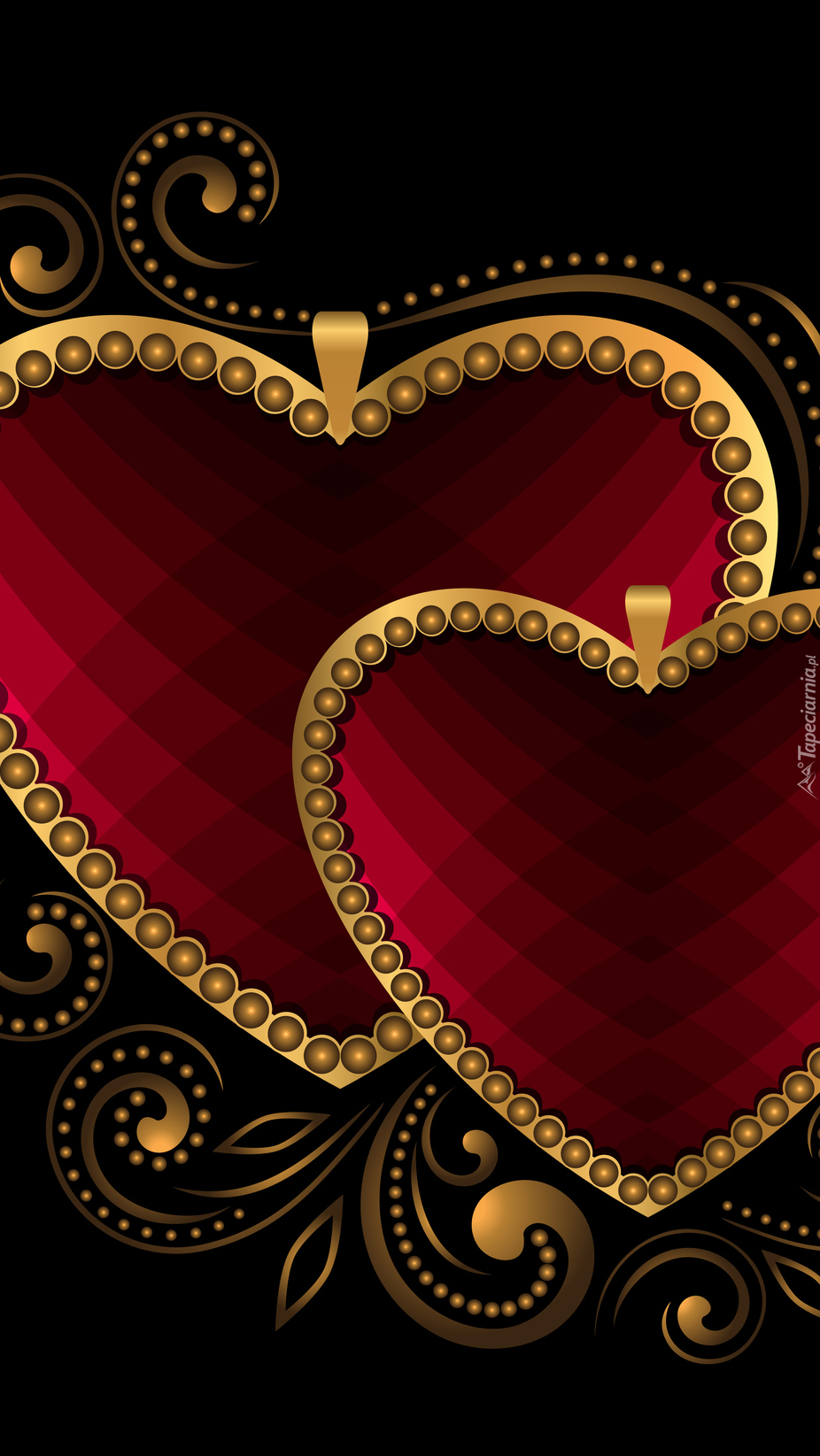 Edytor tapety: Graficzne czerwone serca ze złotym obramowaniem