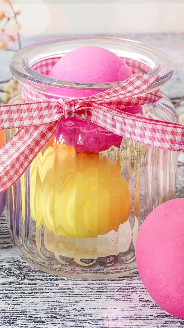 Edytor tapety: Pisanki w słoiku z kokardą