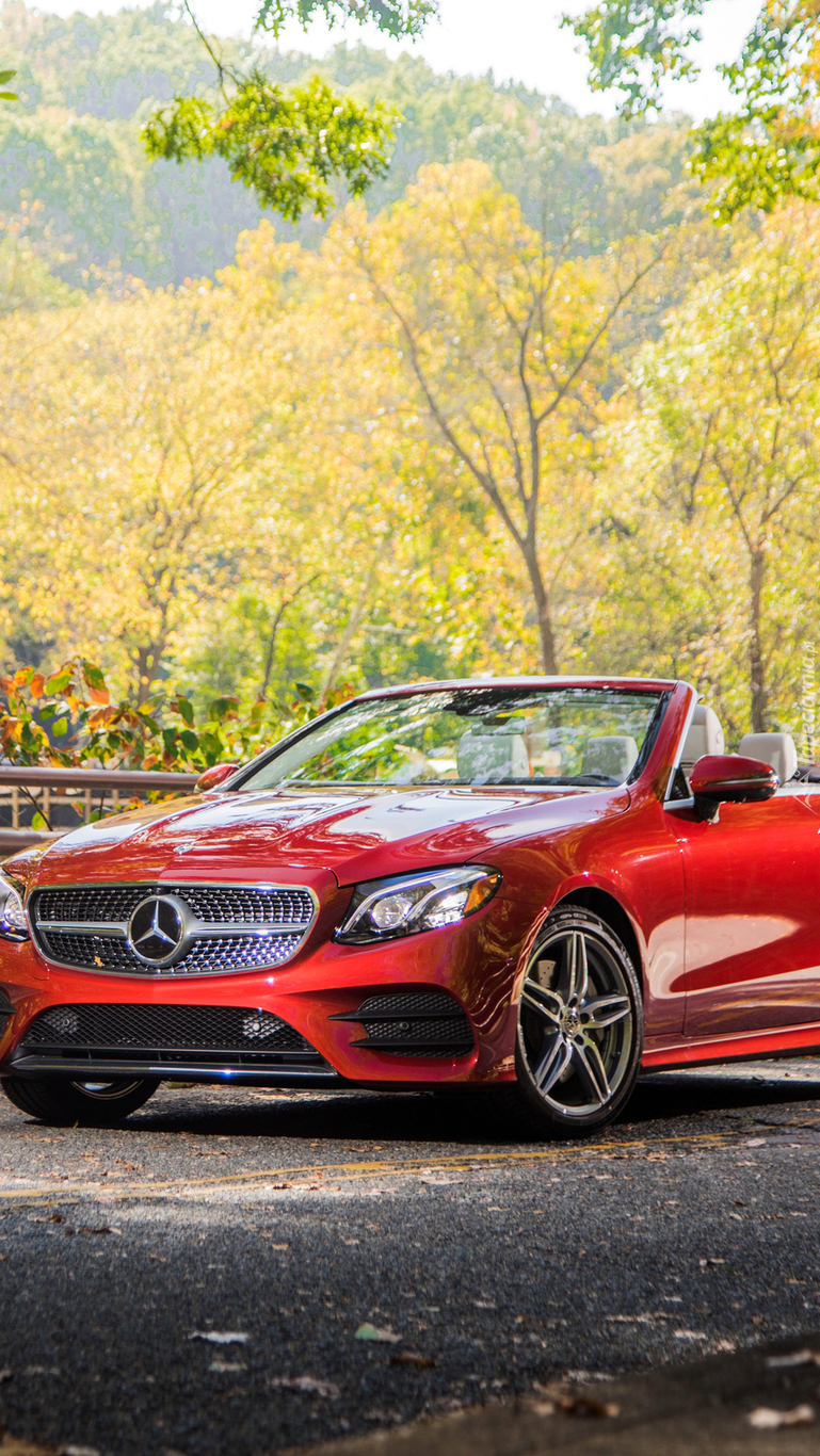 Edytor tapety: Czerwony Mercedes-Benz na drodze