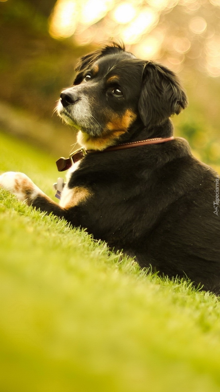 Edytor tapety: Pies leżący na trawie