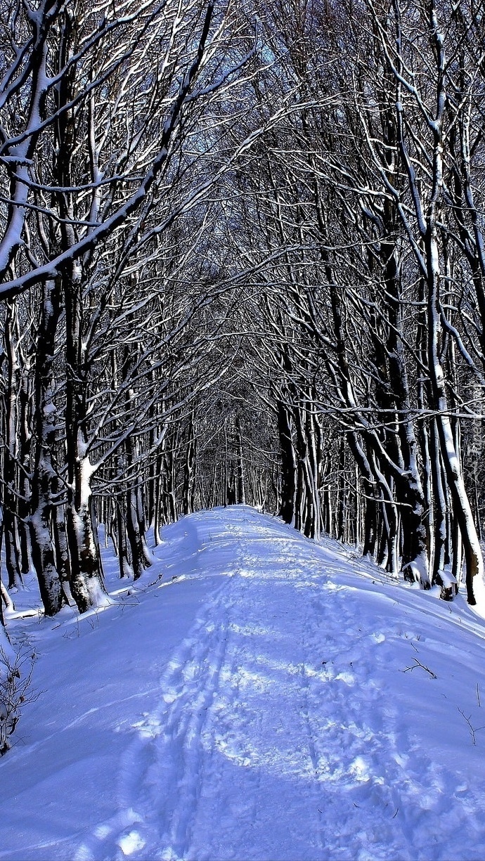 Edytor tapety: Ośnieżona droga przez las