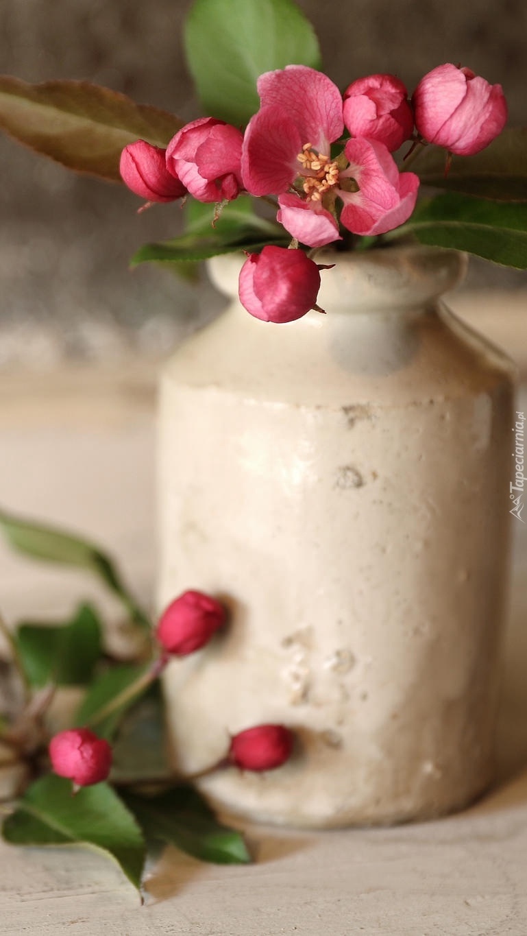 Edytor tapety: Kwiaty drzewa owocowego w wazoniku