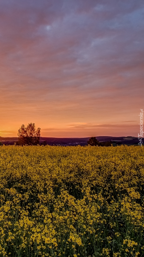 Edytor tapety: Pole rzepakowe o zachodzie słońca