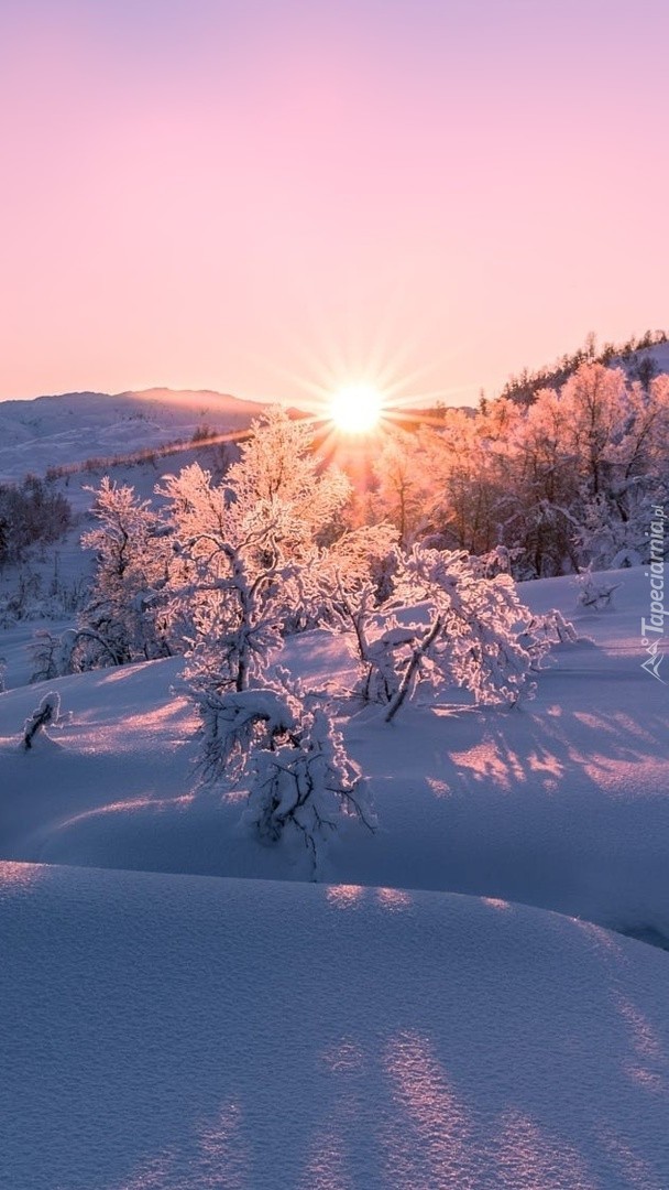 Edytor tapety: Zachód słońca w zimowej scenerii