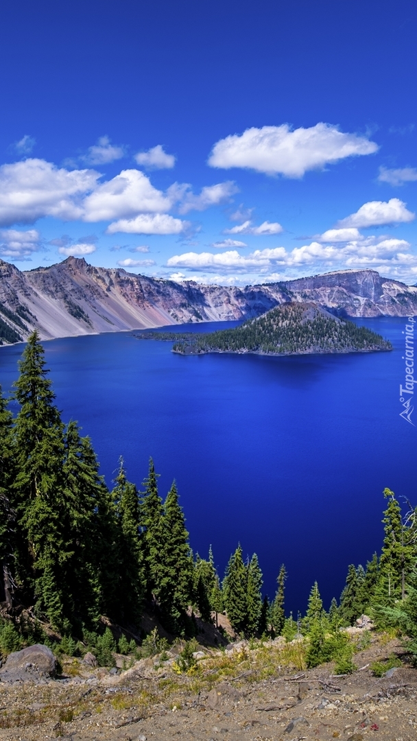 Edytor tapety: Wyspa Czarodzieja na jeziorze Kraterowym
