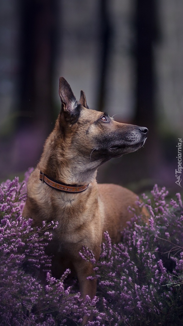 Edytor tapety: Owczarek belgijski we wrzosach