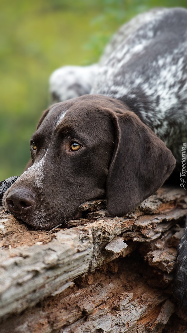 Edytor tapety: Wyżeł niemiecki na konarze drzewa