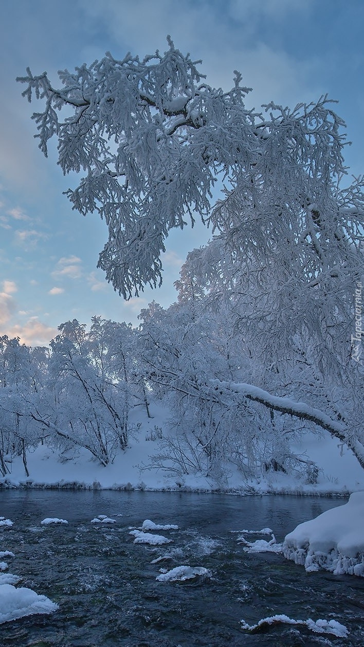 Edytor tapety: Ośnieżone drzewa nad rzeką w Laponii