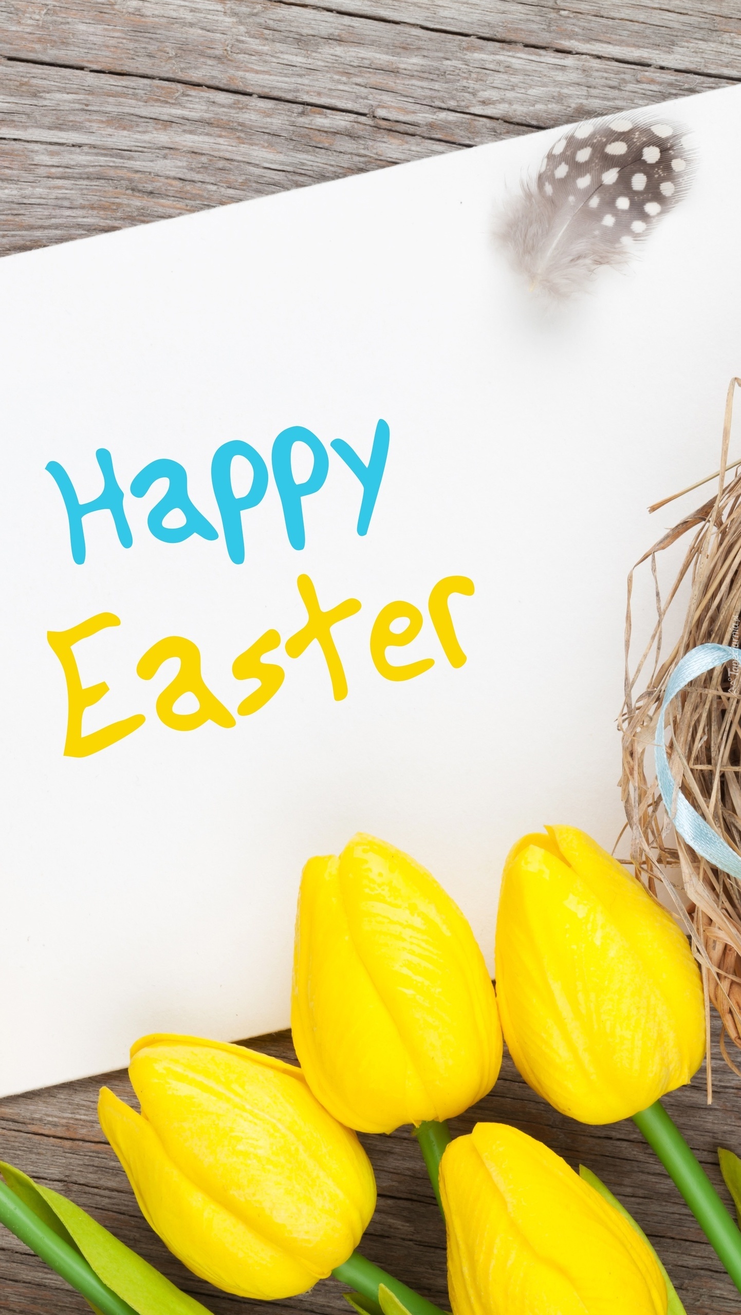 Edytor tapety: Żółte tulipany i życzenia wielkanocne