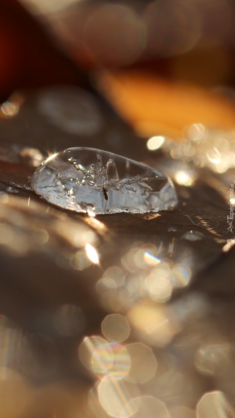 Edytor tapety: Kropla na suchym liściu