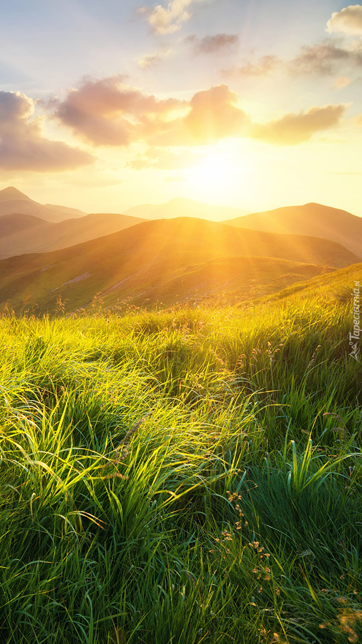 Edytor tapety: Wschód słońca w górach