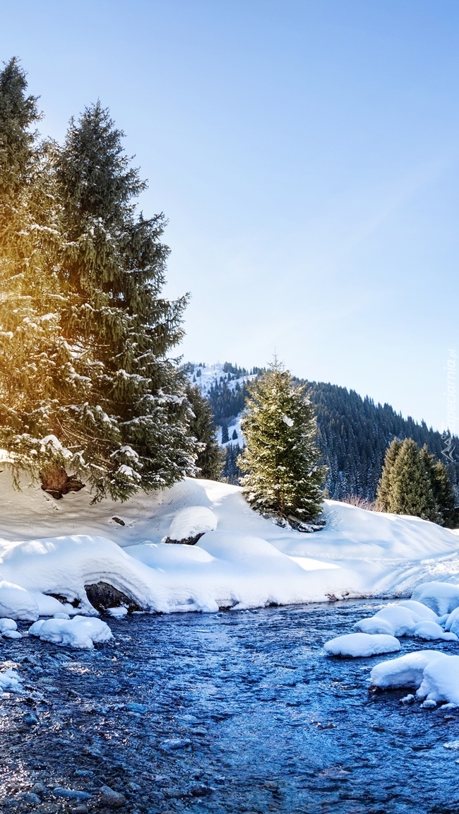 Edytor tapety: Świerki nad rzeką