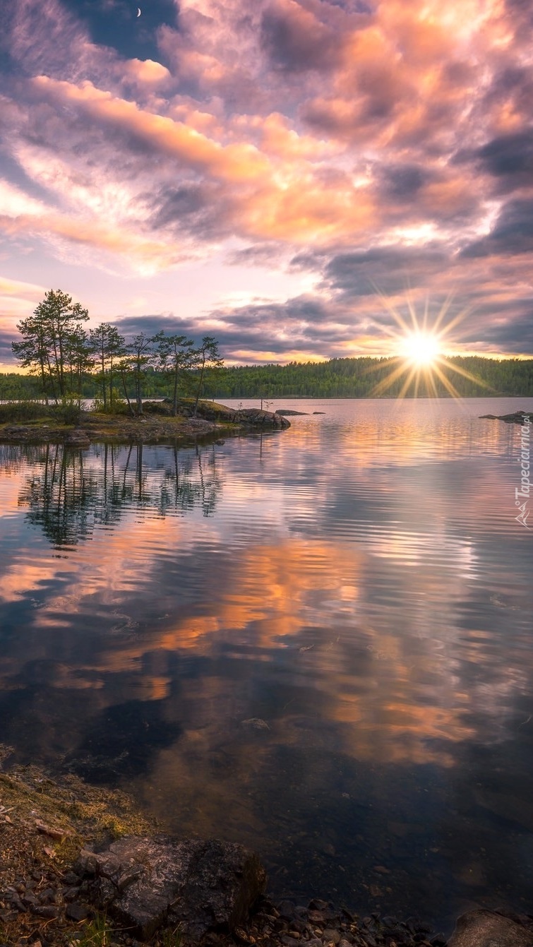 Edytor tapety: Zachód słońca nad jeziorem w Norwegii