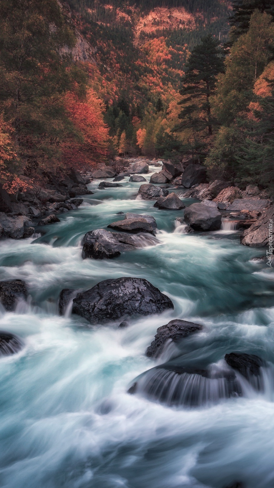 Edytor tapety: Rwąca rzeka jesienią
