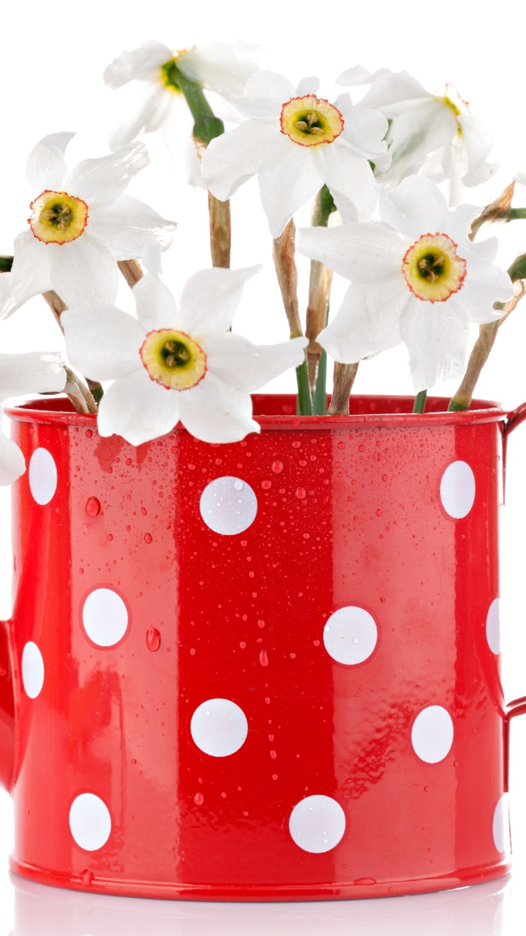 Edytor tapety: Narcyzy w kubeczku z kropkami