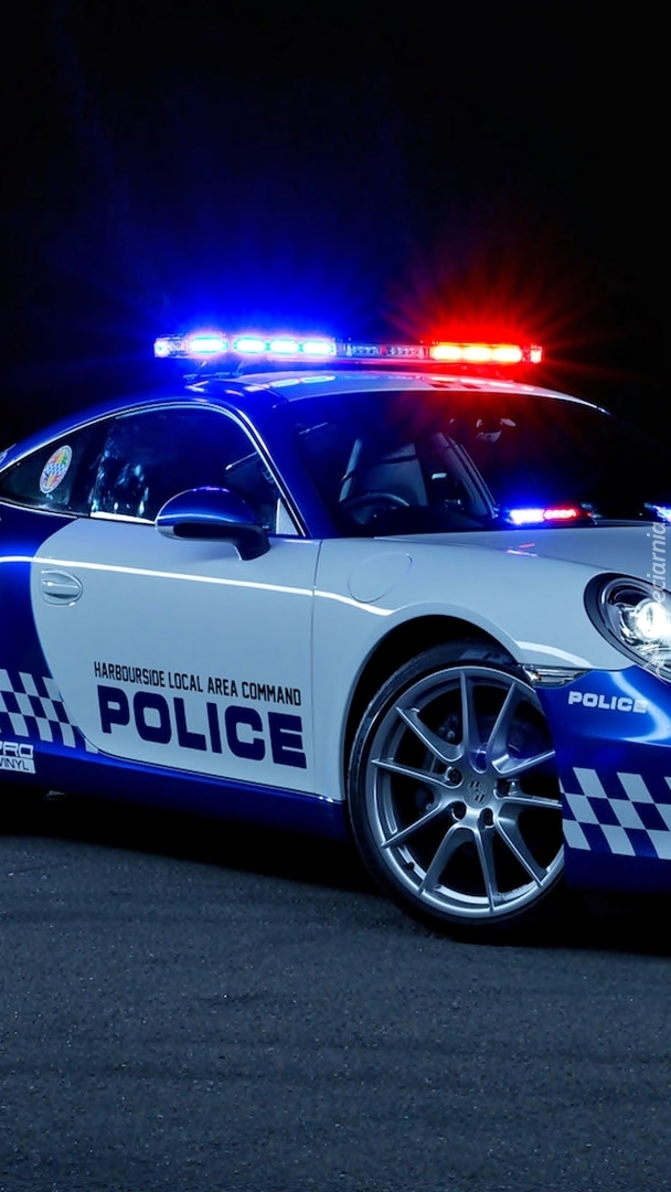 Edytor tapety: Policyjne Porsche 911 na sygnale