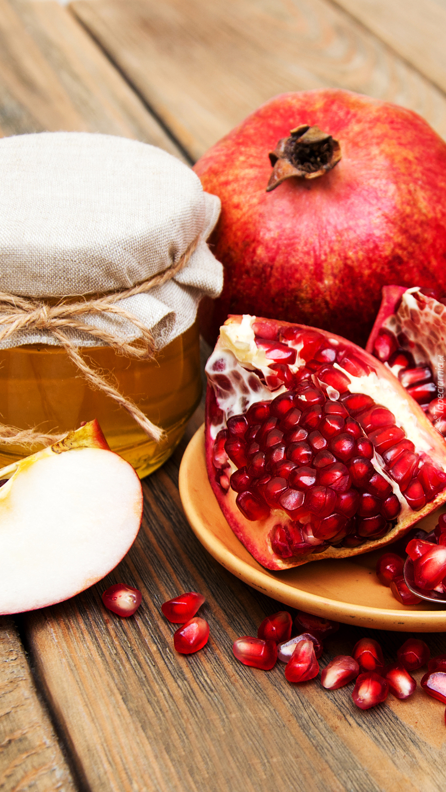 Edytor tapety: Granaty i słoik miodu