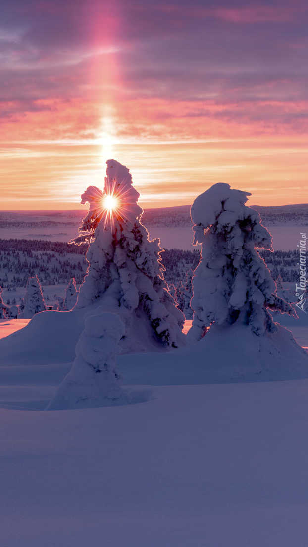 Edytor tapety: Ośnieżone wzgórza w promieniach słońca