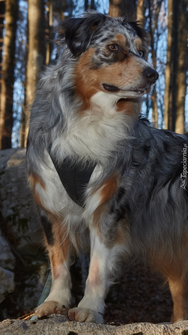 Edytor tapety: Owczarek australijski w lesie