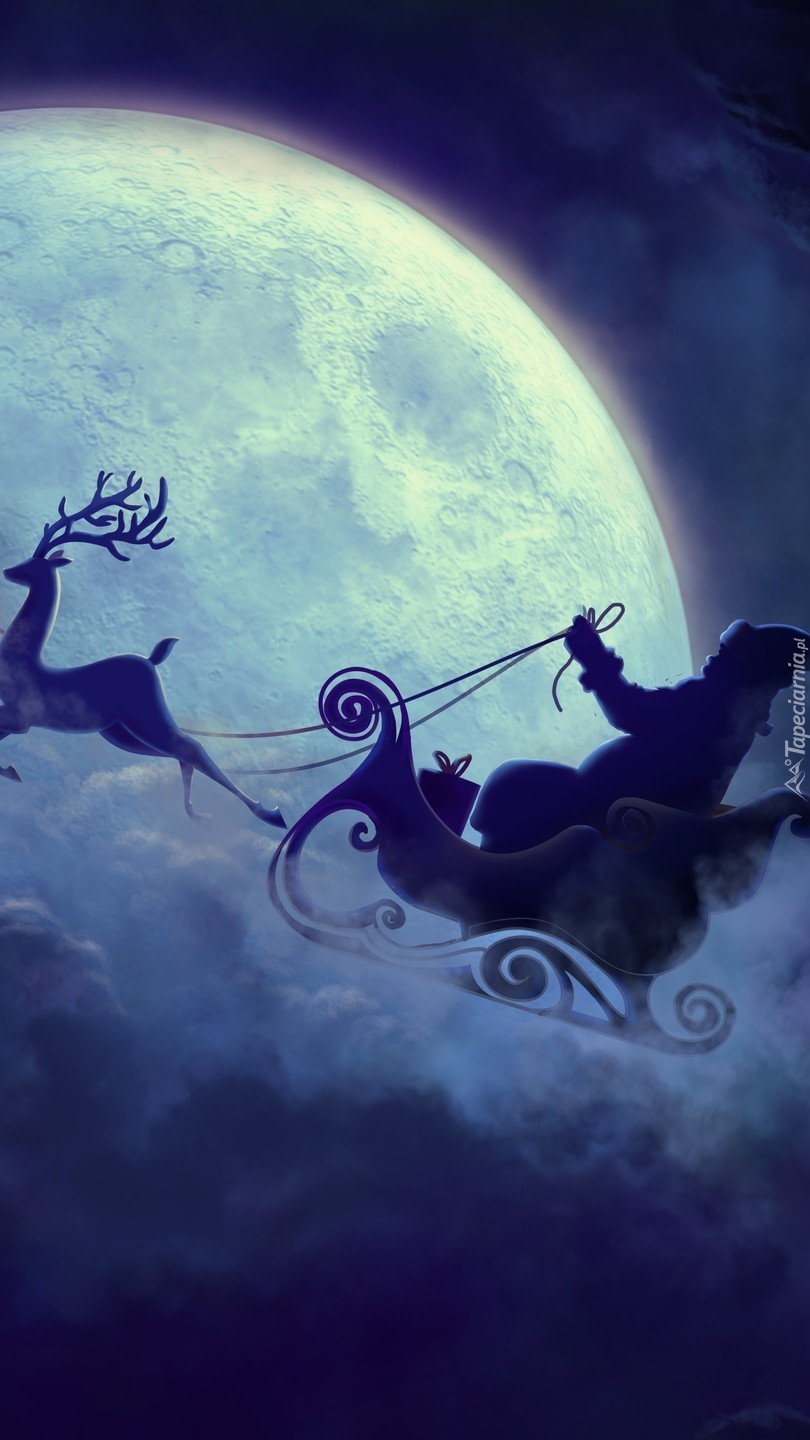 Edytor tapety: Mikołaj w saniach na tle księżyca