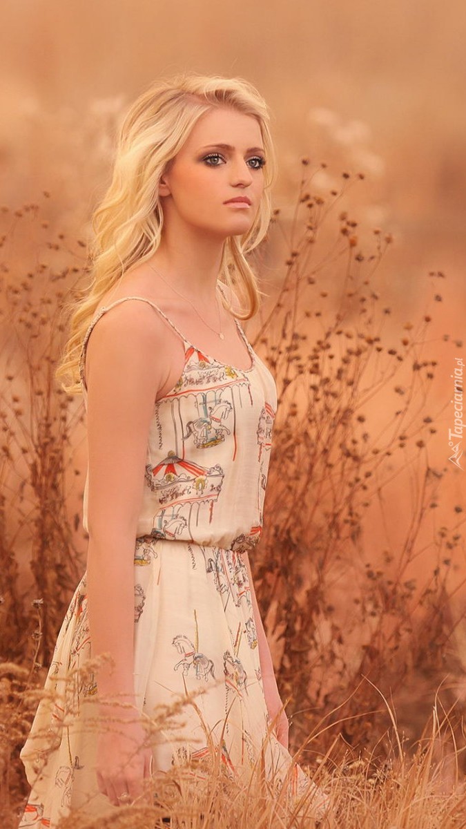 Edytor tapety: Piękna blondynka stojąca pośród traw
