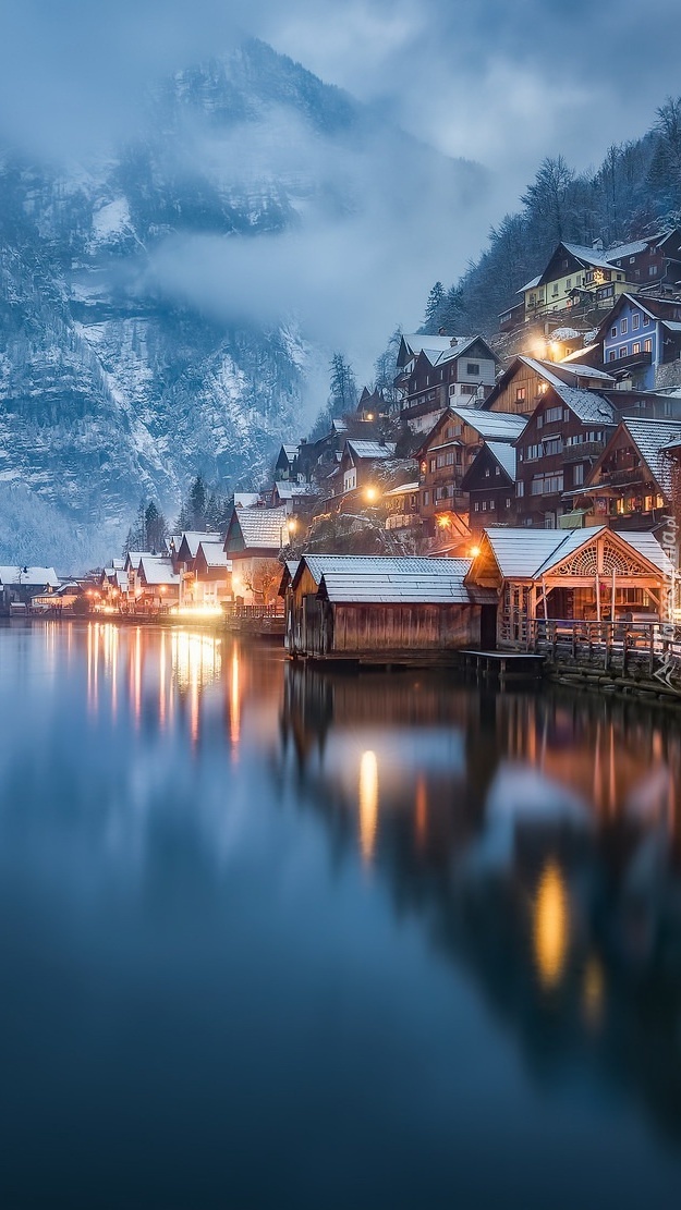 Edytor tapety: Hallstatt nad jeziorem w Austrii