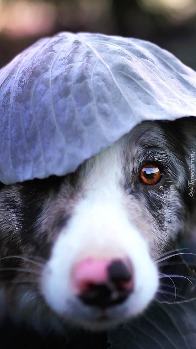 Edytor tapety: Border collie z liściem kapusty