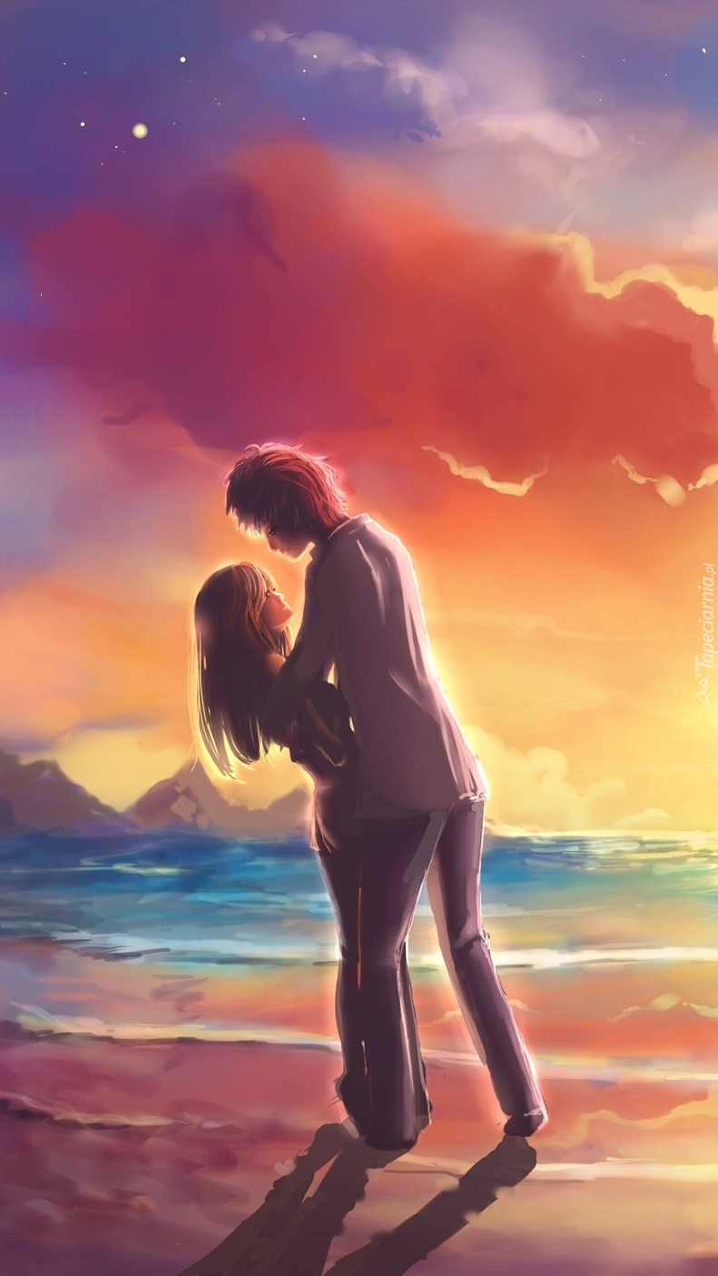 Edytor tapety: Zakochana para nad morzem