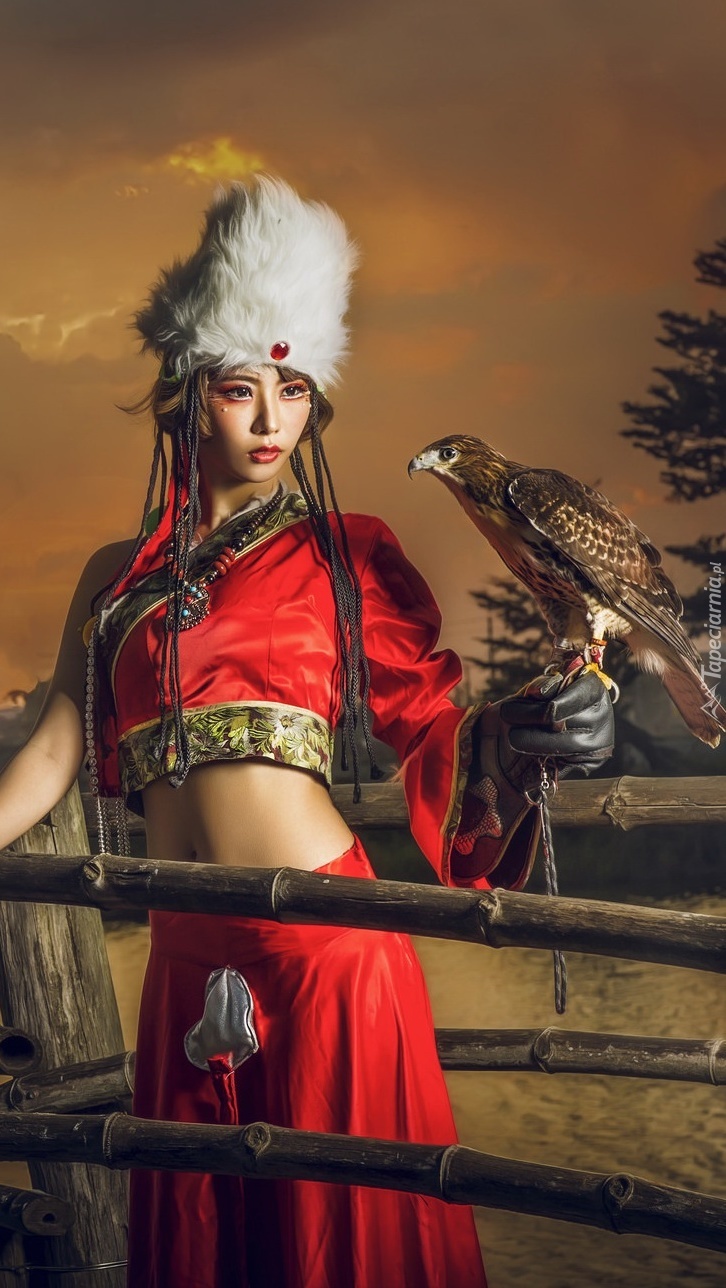 Edytor tapety: Azjatka z sokołem