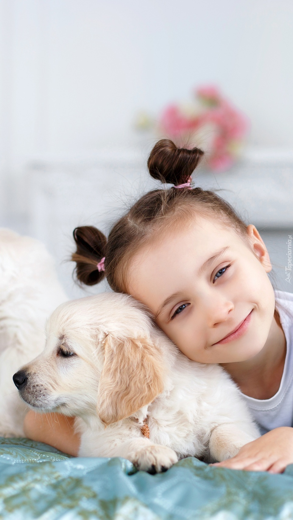 Edytor tapety: Dziewczynka ze szczeniakiem