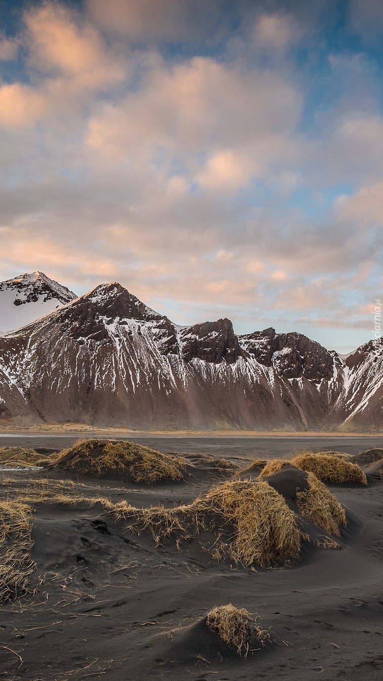 Edytor tapety: Kępy traw na ciemnym piasku