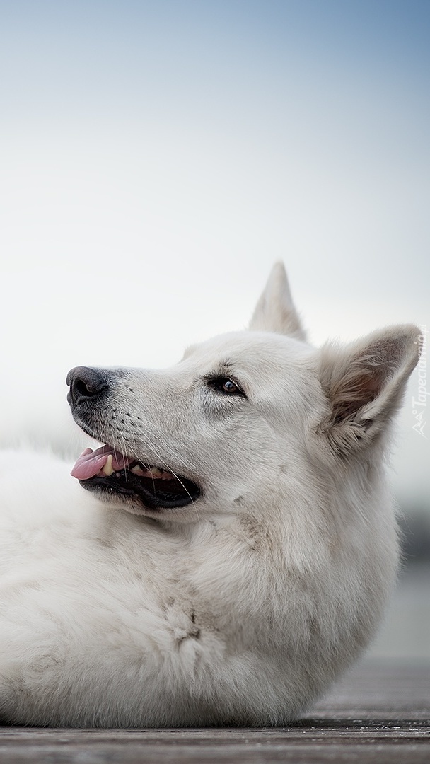 Edytor tapety: Leżący biały owczarek szwajcarski