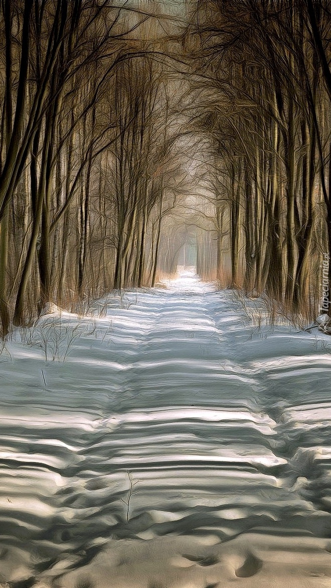 Edytor tapety: Droga zimą przez las