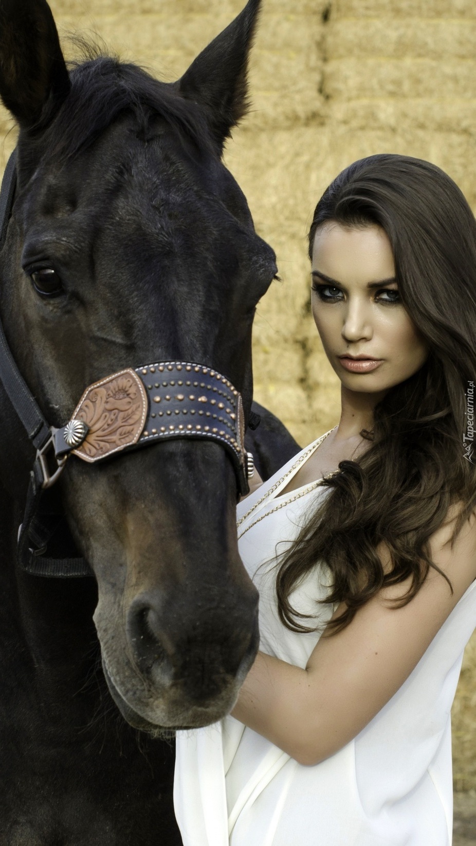 Edytor tapety: Kobieta przy karym koniu