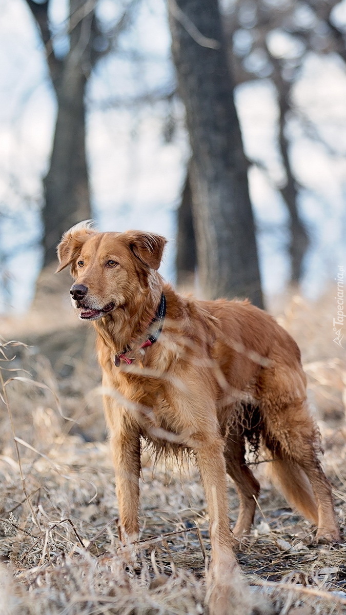 Edytor tapety: Pies na oszronionej trawie