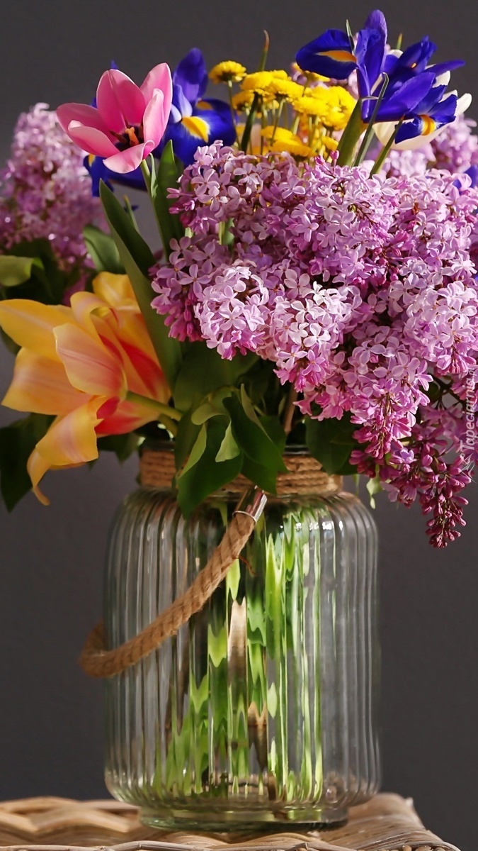 Edytor tapety: Wiosenne kwiaty w słoiku
