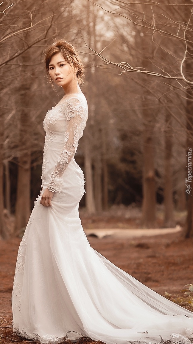 Edytor tapety: Panna młoda w sukni z trenem