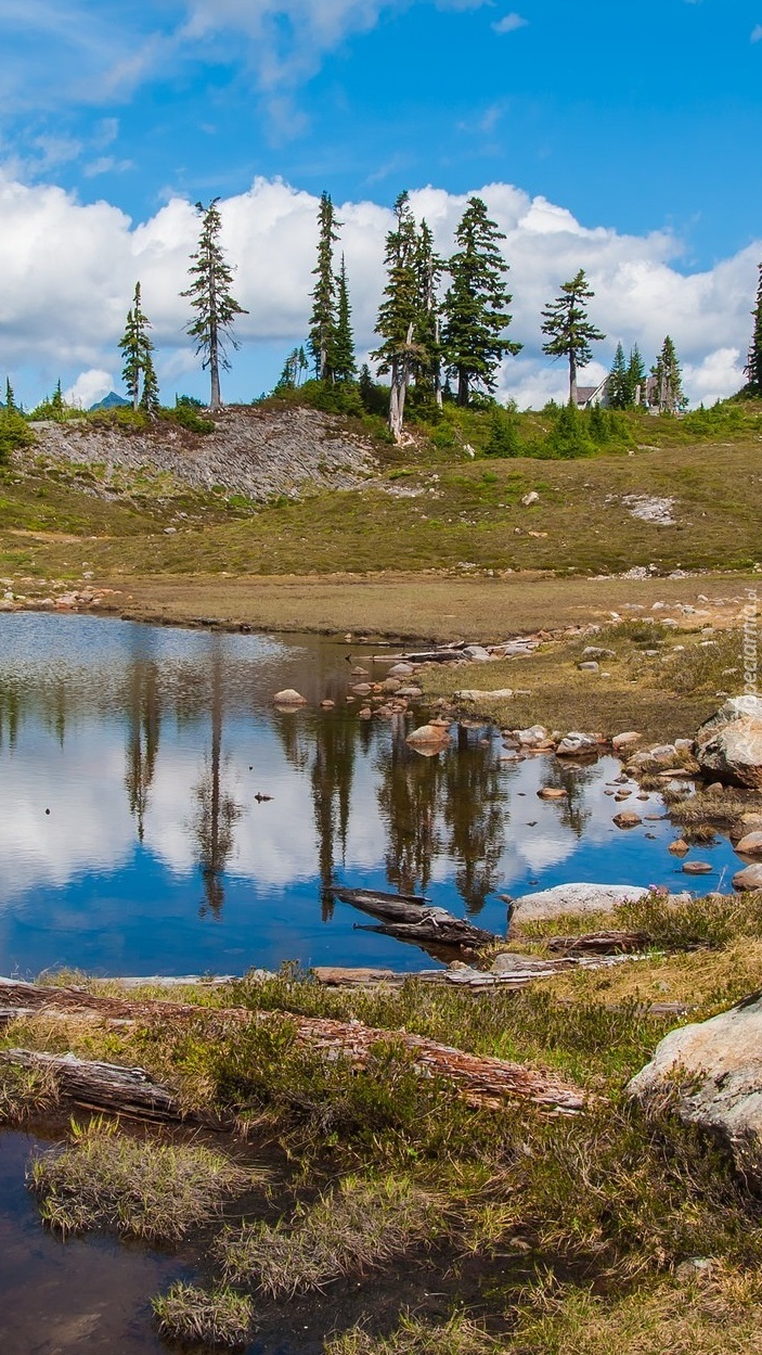 Edytor tapety: Świerki nad jeziorem