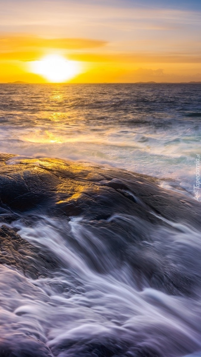 Edytor tapety: Falujące morze o zachodzie słońca