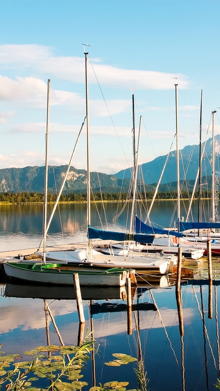 Edytor tapety: Przystań żaglówek na jeziorze
